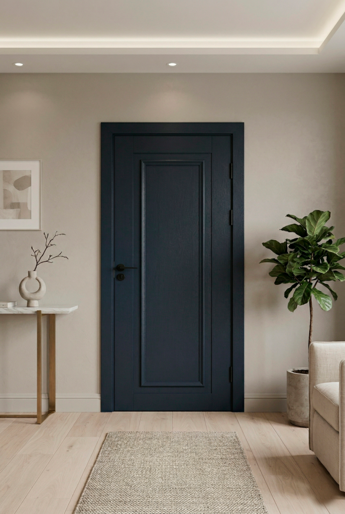 Estética clássica e imponente, definida por um único painel central retangular delineado por molduras robustas em alto relevo. A sobreposição de volumes cria profundidade e um visual tradicional. A superfície lisa oferece elegância atemporal e versatilidade ao projeto.