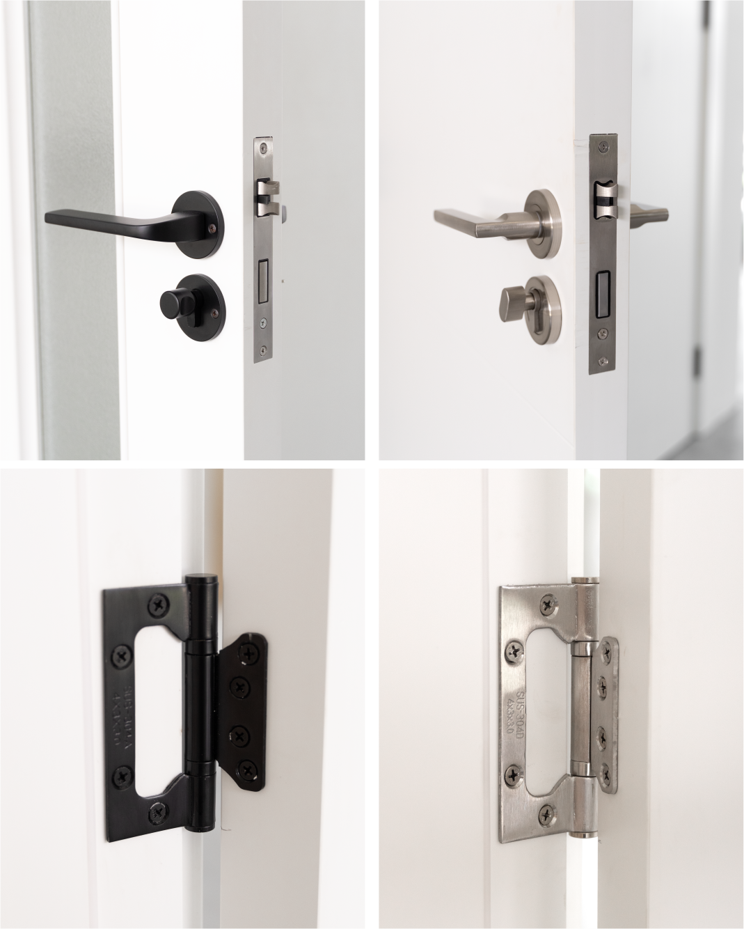 Sistema de cilindro com chave apenas na parte externa, garantindo máxima segurança e privacidade; acabamento disponível em preto texturizado ou aço escovado.